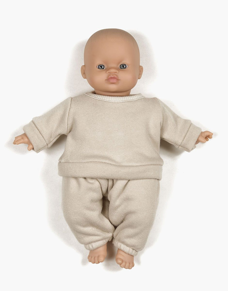 Ensemble Liam en éponge maille pour poupées Babies 28cm Minikane. Design, développement & confection made in France.