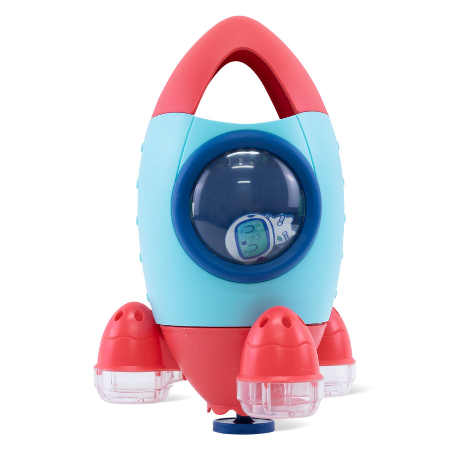 This floating, pouring and spinning bath rocket brings fun, interactive water voyages for little tub time explorers! Kids will love the simplicity of this rewarding, cause-and-effect toy – simply dunk the rocket underwater to fill it up, and delight in the water cascading out as the ‘jets’ spin, creating a fun dome shape.