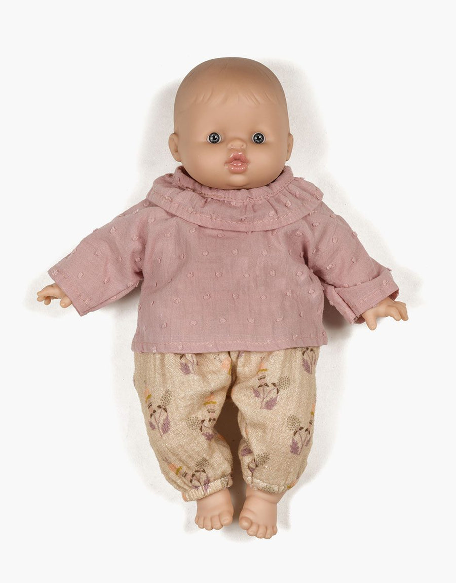 Babies - Ensemble Coline Top Colette plumetis rosethé et son pantalon Gaston élastiqué fleurs d'avril