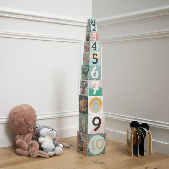 10 cubes gigognes en carton illustrés par l'artiste Michelle Carlslund