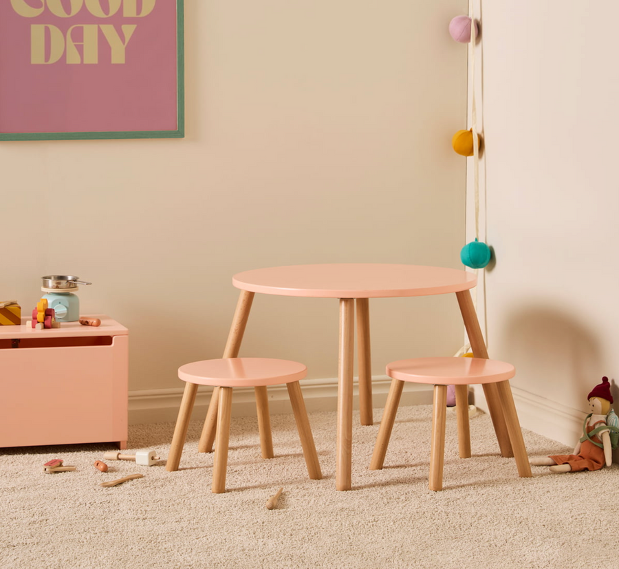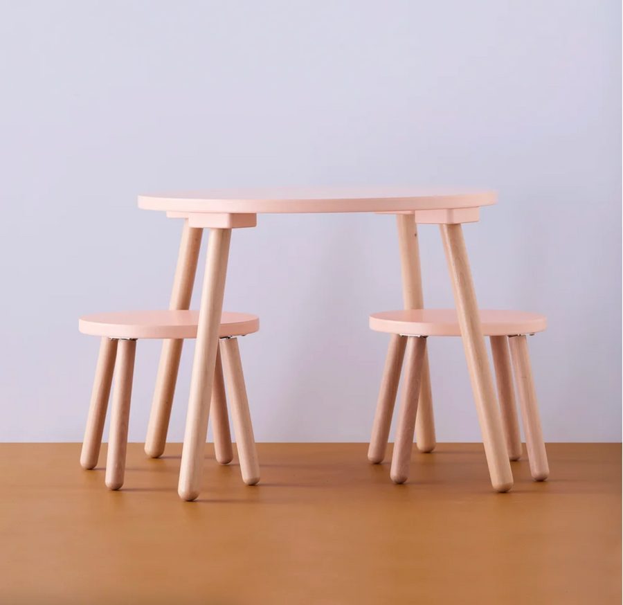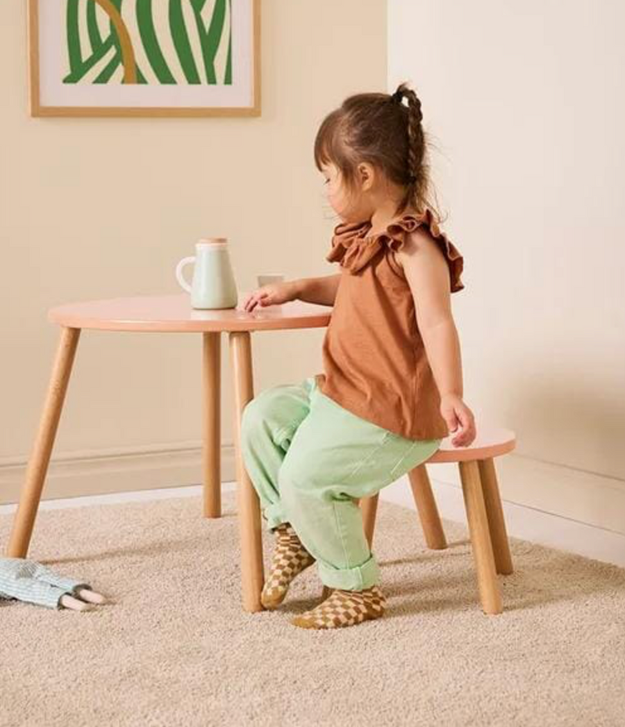 Ensemble table et tabouret abricot