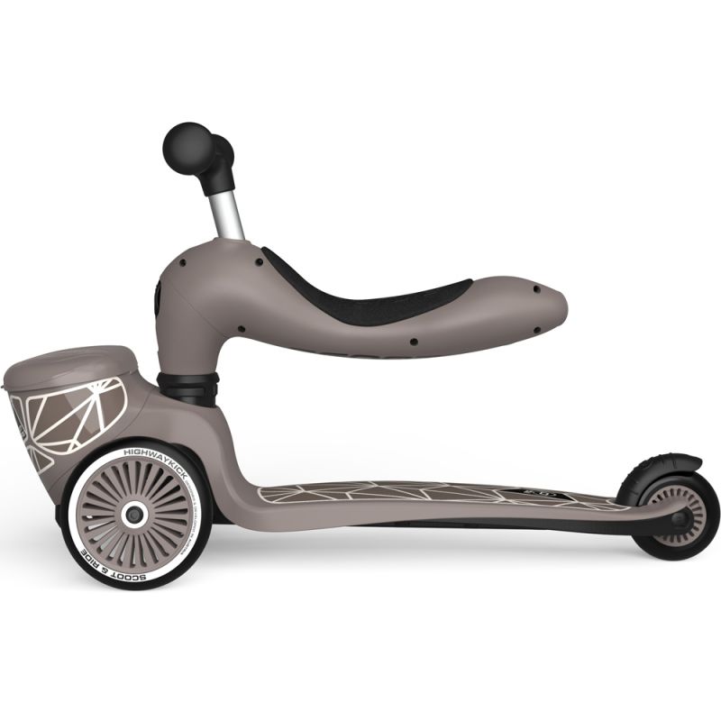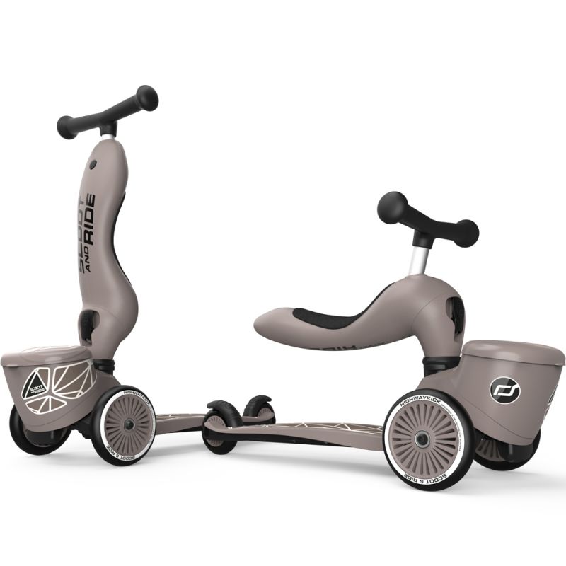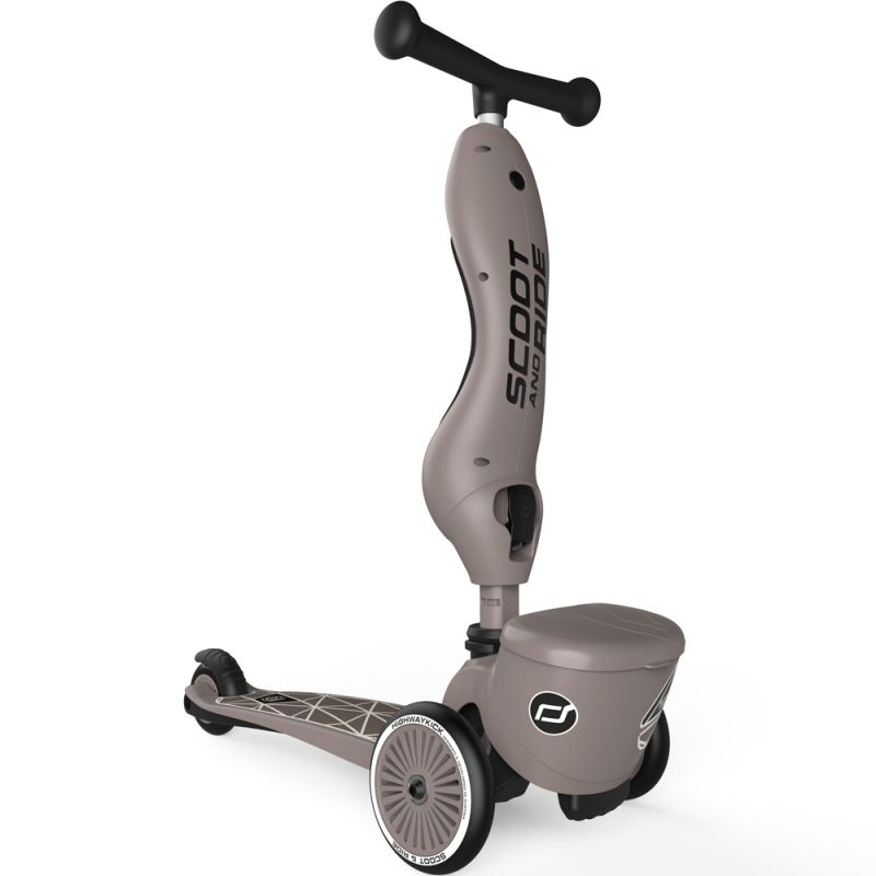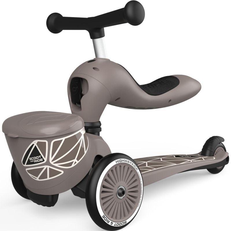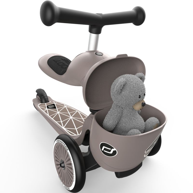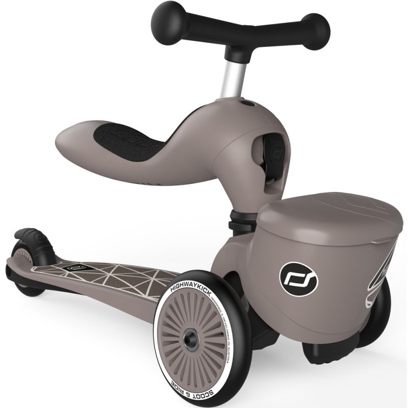 The Highwaykick 1 is the ideal companion for children aged one to five. It is a 2-in-1 one kickboard with seat. This Lifestyle edition has a cute storage box on the front to take their favorite cars or stuffed animal for a ride. No tools needed for adjusting the seat height or converting it into scooter modus. It grows easily together with your little one. Because of its stability this product gives the little ones the opportunity to move safely and comfortably inside and outside. The patented safety pad in the front offers extra security and prevends tipping over