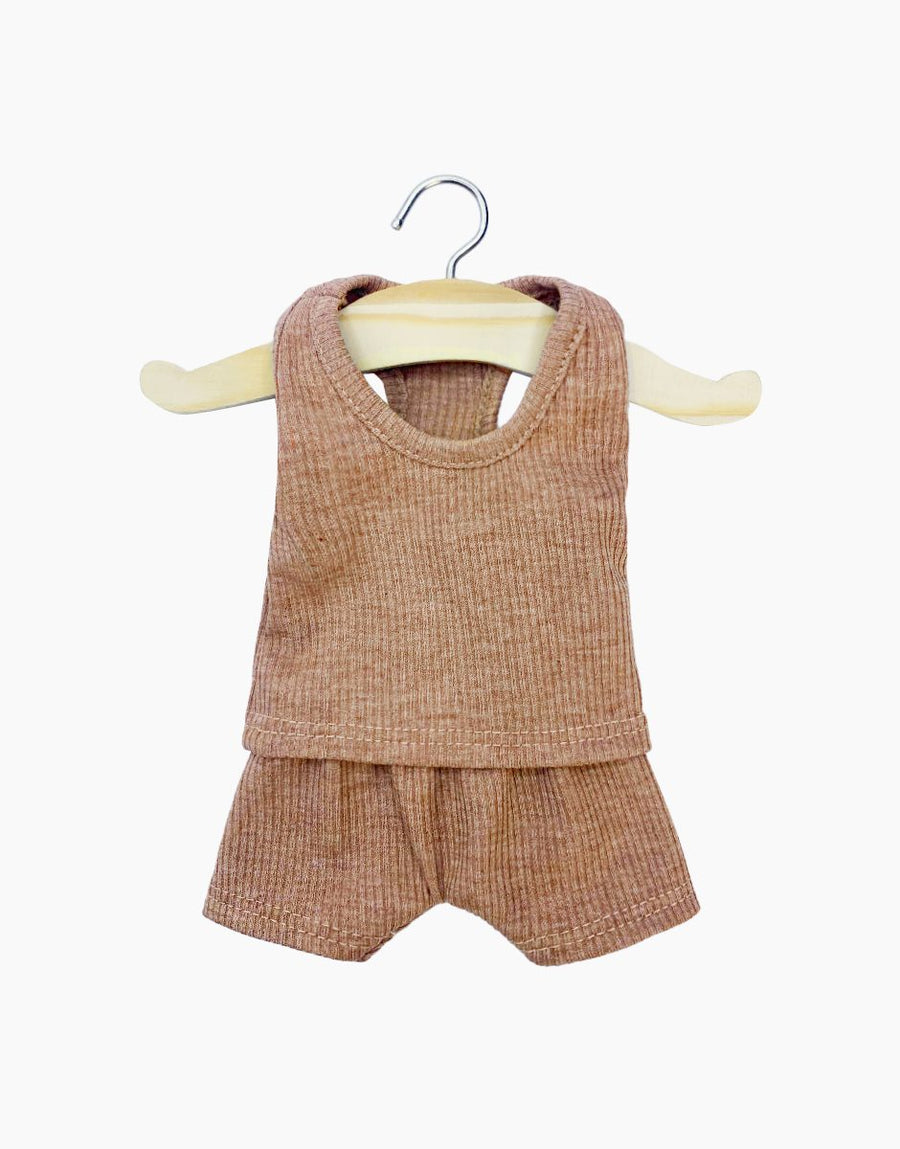 Les P’tits Basiques – Dessous garçon Marcel en maille côtelée caramel chiné