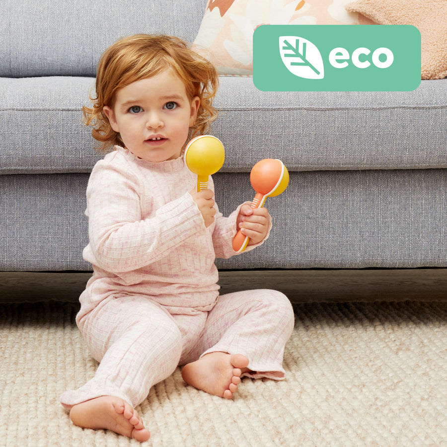 Ces maracas font partie de notre nouvelle gamme ECO et sont fabriquées à partir de bio plastique durable. Vous pouvez donc être satisfait de votre achat en sachant qu'il est respectueux de l'environnement. L'emballage est fabriqué à partir de papier certifié FSC.