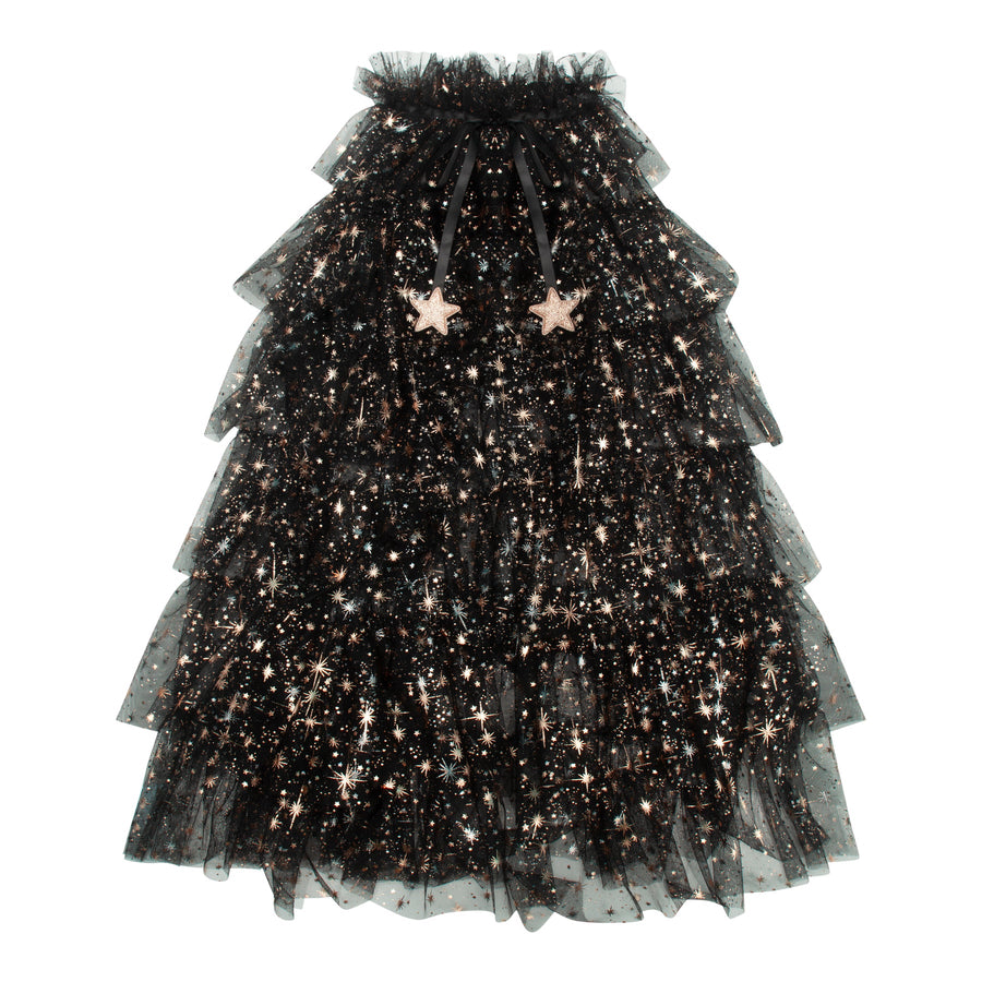 - Popper button closure with satin ribbon tie and gold glitter star charms