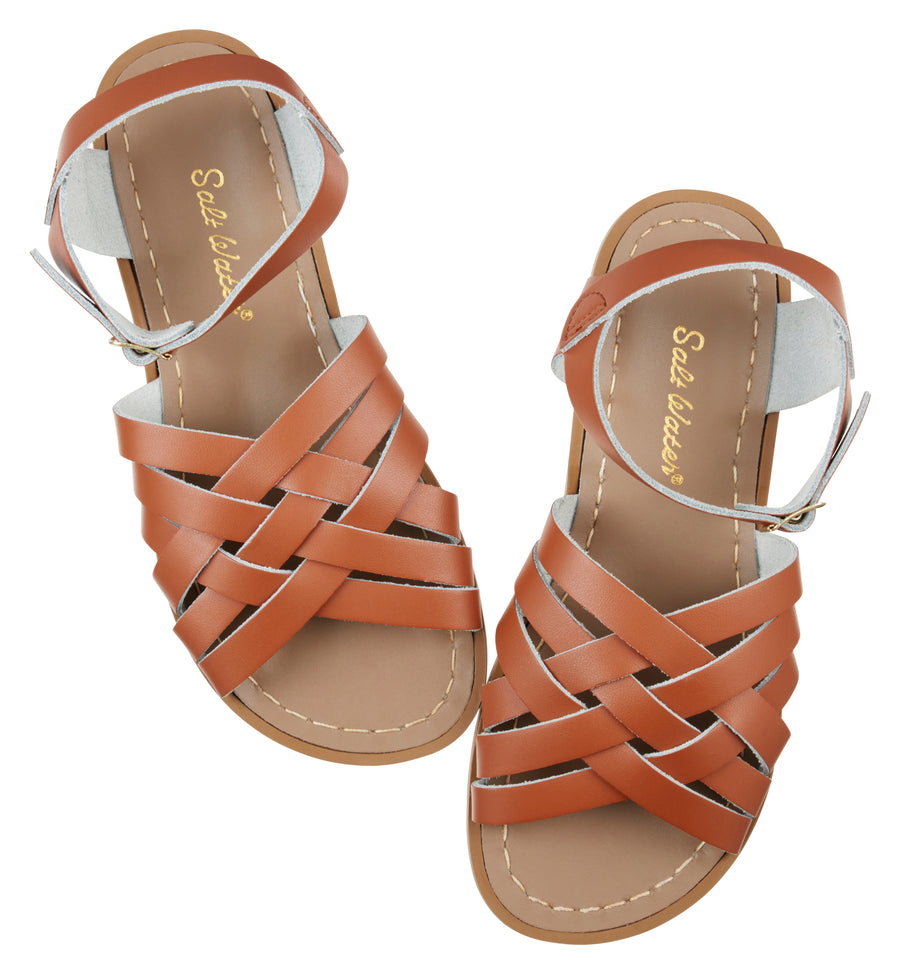 Introducing the Tan Retro. Reminiscent of the Mexican Huarache sandal originally popular in the 1960s, the Retro sandal is another model that Salt-Water Sandals are relaunching over 40 years later in an array of gorgeous colours. From our signature core colours to metallics to brights - The Retro in tan is the ultimate everyday summer sandal. The Retro woven sandal is defined by its 100% waterproof leather, rust proof buckles and can be hand washed using warm water and a gentle detergent. Now available in kids sizes.